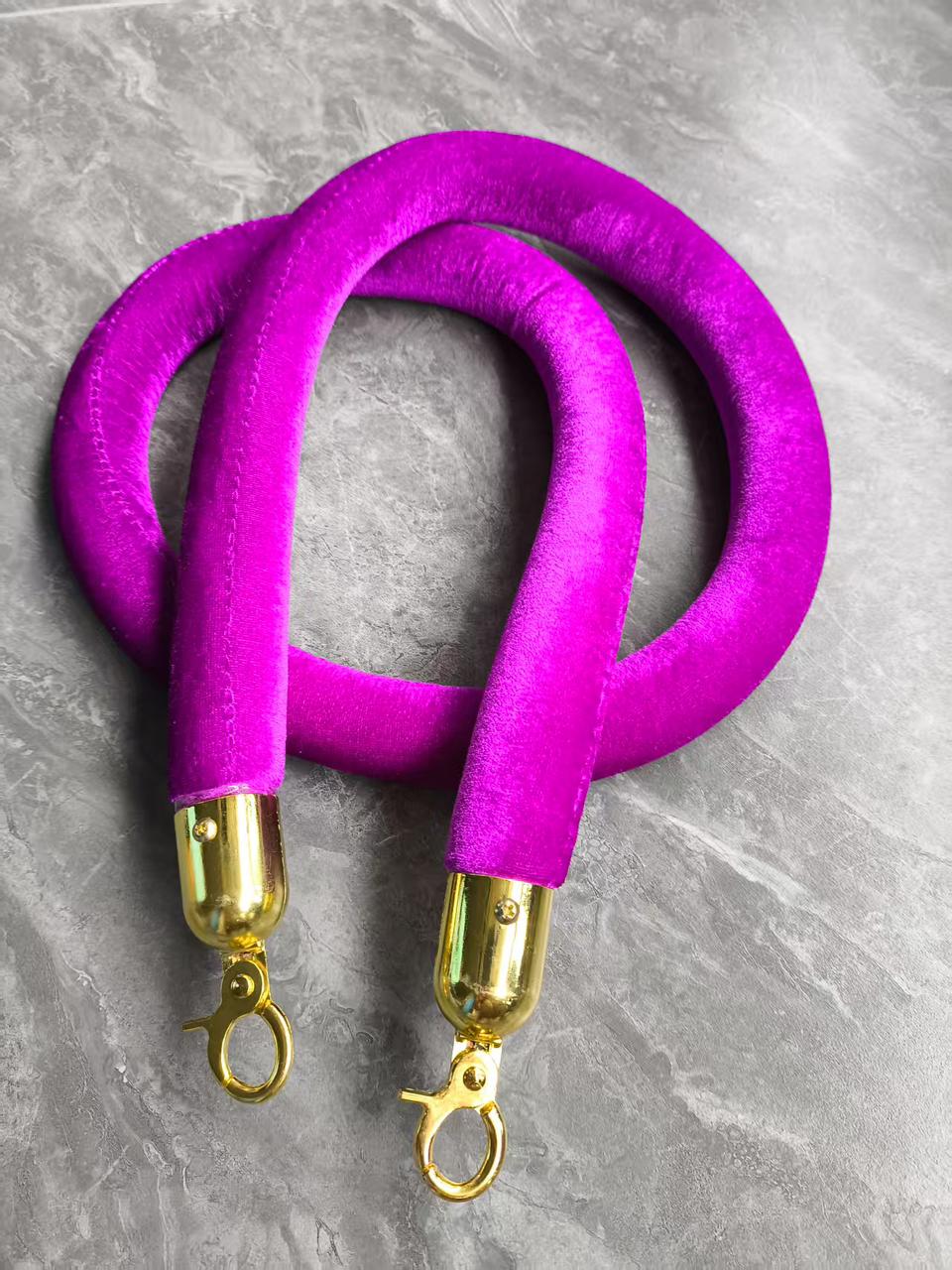 Предлагаем к продаже декоративный бархатный канат фиолетового цвета длиной 1,5 метра для столбиков и стоек ограждения ваших мероприятий.