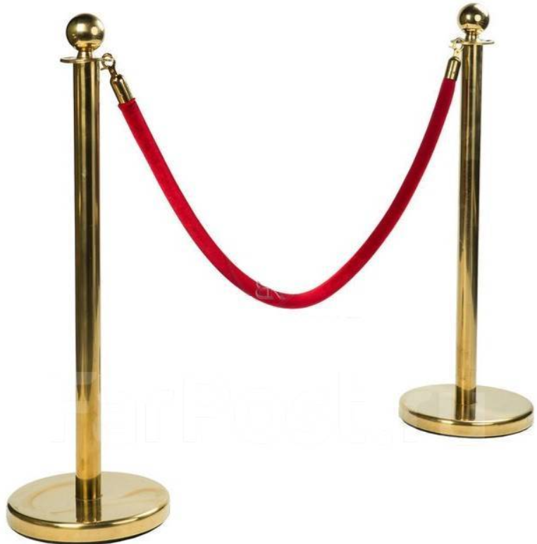 Ленточное ограждение столбик золотая стойка с канатом тросом 1,5 метра