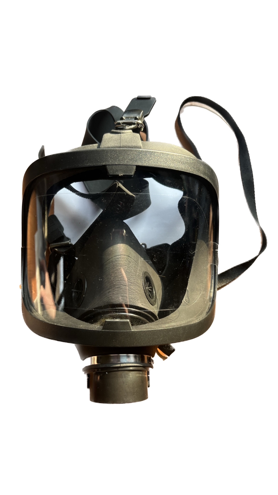 Панорамное стекло-корпус, резиновый уплотнитель с двойным обтюратором, клапанная коробка с клапанами вдоха/ выдоха, переговорное устройство, подмасочник с клапанами вдоха, оголовье. -